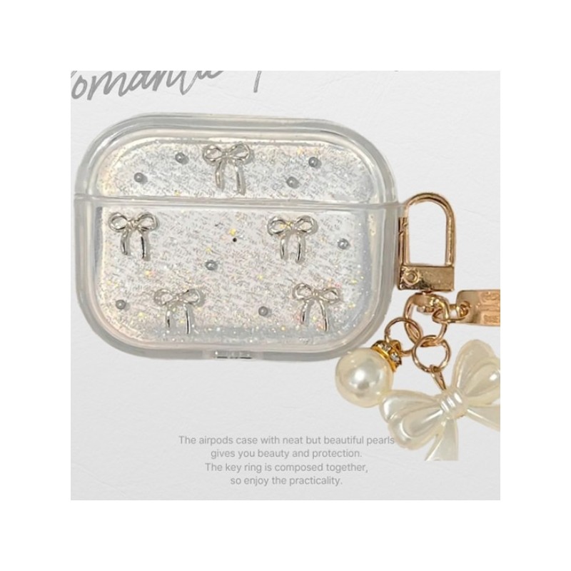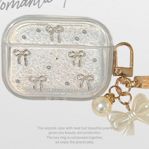 Clear Pearl AirPod Case Keyring Romantic Ribbon Unique Style Essential Item AirPods 3rd generation single option keyring/FREE