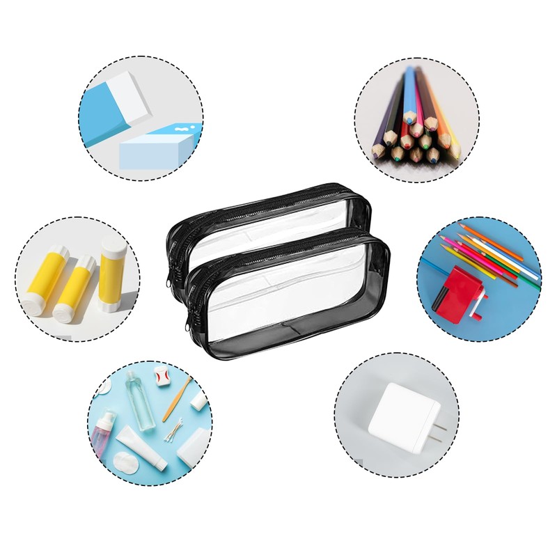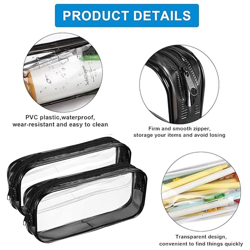 - Product Includes: You will receive 2 clear pencil cases with black borders, measuring 20cm x 8cm x 3 cm. These flat rectangular cases are portable and waterproof, with flexible zippers. They are ideal for use as children’s pencil cases, or as toiletry bags, cosmetic bags, cable storage, etc.