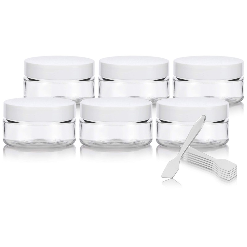 Clear PET Plastic (BPA Free) Refillable Low Profile Jar with White Lid - 2 oz (6 Pack)
