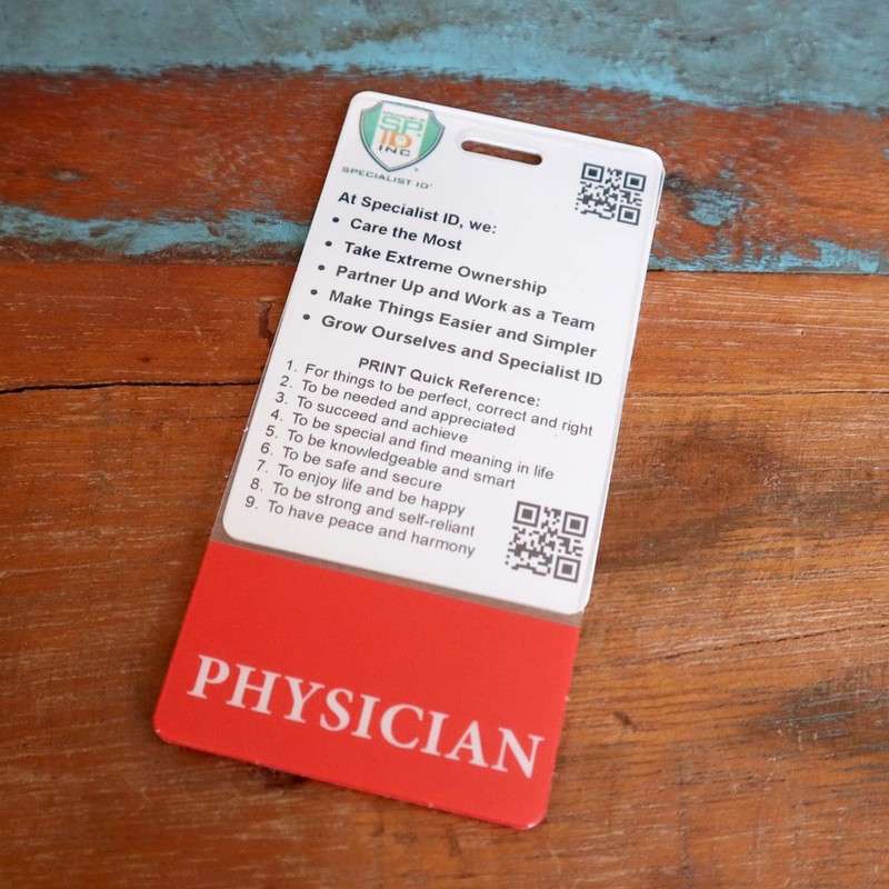 - DOUBLE SIDED - TITLE VISIBLE ON BOTH SIDES - Don't Worry if Your Badge Flips Around, Clear Card Lets Your Info Be Seen No Matter What! Patients Can Rest Assured Recognizing the Doctors, Nurses, technicians Walking Into the Room.