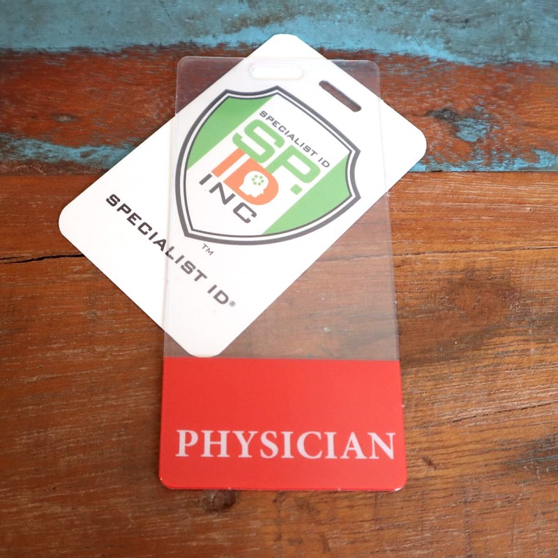 Clear Physician Badge Card Vertical - Doctor Badge Buddy - Transparent Title/Medical Role Identifier - Hospital Name Tag Badge by Specialist ID (Red)