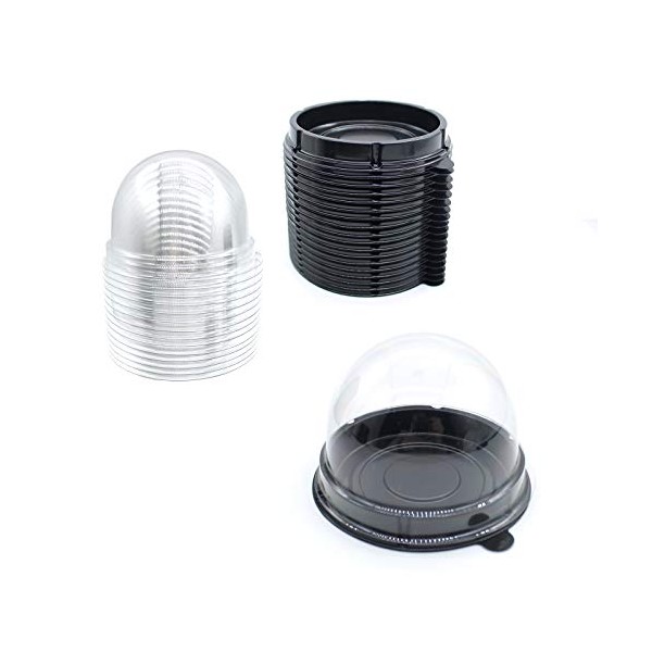Clear Plastic Mini Cupcake Container,25 PC Mooncake Boxes Muffin Pod Dome Muffin Single Cupcake Holders Individual Cupcake Containers Plastic Disposable (Black, 25pc)