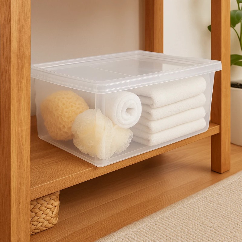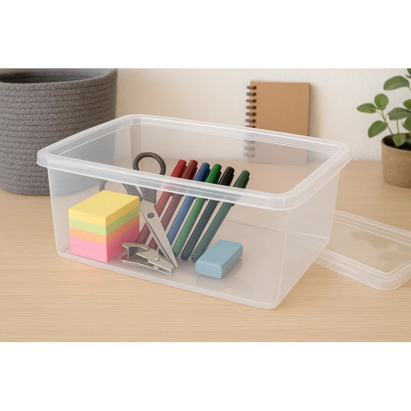 Clear storage box features a clean, simple design to elegantly organize any room or space throughout your home or office. Snap-tight lid creates a secure closure to keep your contents safely contained. Stackable design helps maximize your storage space and reduces clutter in limited spaces. 17-quart storage box is perfect for storing notebooks, scissors, staplers, household items, office supplies and more.