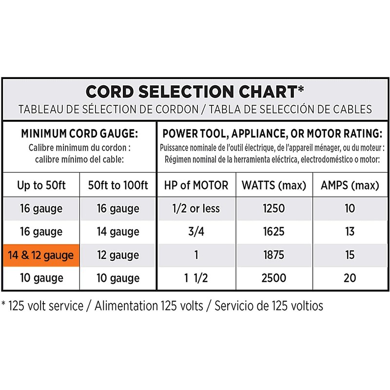 - 12 gauge heavy duty wire, 3 prong grounded plug