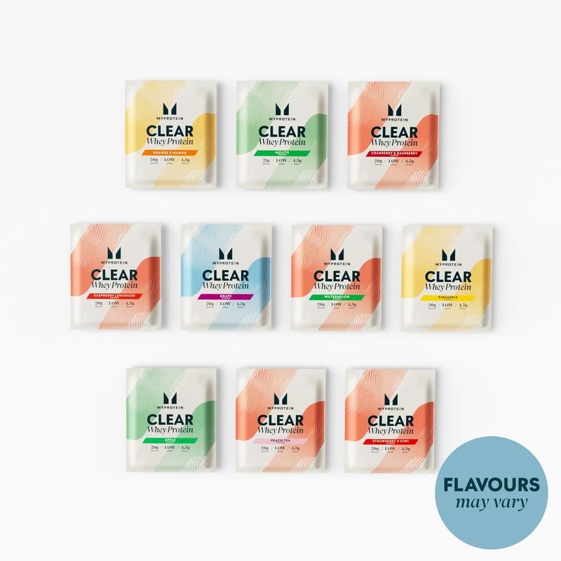 So, you’re either embarking on a fitness journey or dusting off those workout shoes. Whichever way you’re rolling, this variety pack will open you up to a whole new world of tasty Clear Whey Protein flavours. Each delicious serving is packed with at least 19g of protein, to help grow your muscle and maintain healthy normal bones.1,2 And if that’s not sweet enough, it’s low in sugar and has fewer than 90 calories a serve. Now, Clear Whey Protein isn’t just your run-of-the-mill protein shake. It scooped “Best Protein Powder” at the European Specialist Sports Nutrition Awards in 2022. And it’s award-winning for a reason. A bit different to your traditional whey. Clear Protein is more like a juice — light, refreshing and has plenty of fruity flavours to explore. Our Packaging We’ve gone through an exciting redesign, and as we step into a new era, you’ll see fresh packaging in your orders. Change is a good thing. But change takes time. Especially when you make change responsibly. Because we don't believe in wasting perfectly good packaging — that would go against our sustainability pledge — you might get a mix of old and new designs inside your orders. Rest assured, it’s still the same consistently high-quality product, just as you’d expect. If you happen to receive classic packaging, know that your order is helping to reduce waste. And if you receive anything with a fresh look, you’re one of the first, and we'd love to hear what you think. Thank you for joining us on our journey to reduce our impact on the planet, while maximising our impact for our community.
