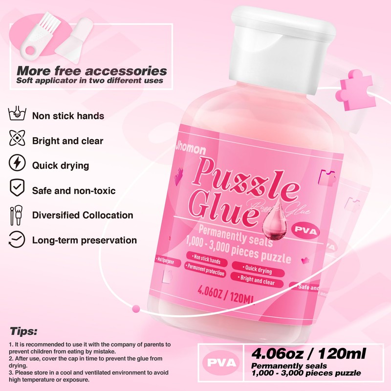 Clear Puzzle Glue With Brushes 120ML, Jigsaw Accessories and Tools, Water-Soluble Special Craft Sheets for Girls (4OZ)