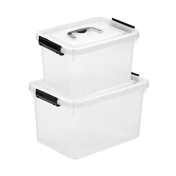 Clear Storage Latch Box/Bin, 2-Pack Plastic Organizing Container with Handle and Lids (7 QT/16QT)