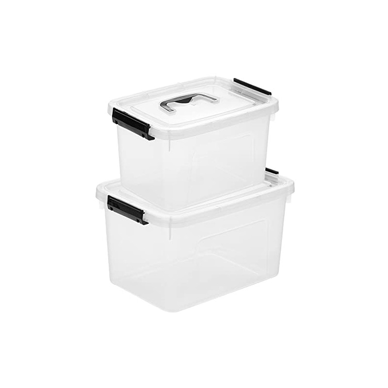 - This durable Clear storage latch bin with clear lid, black handle, volume 7 Litre and 16 Litre.