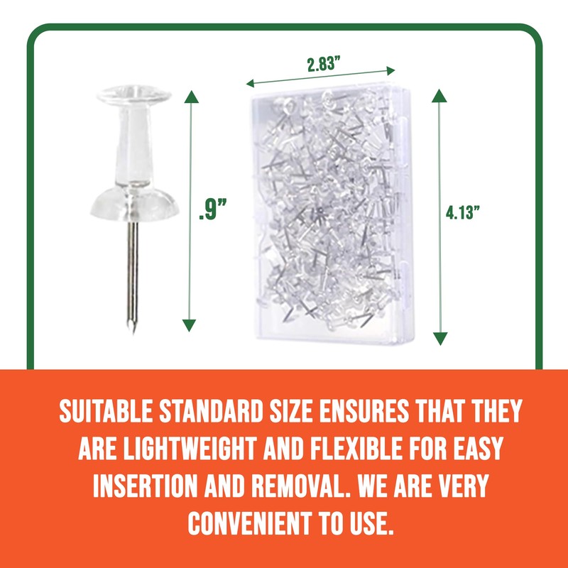 Clear Thumb Tacks for Wall 100- Pack - Clear Plastic Head Thumbtacks with Steel Point - Push Pins for Bulletin Board, Corkboard, Map, Calendar, Photo, Home Office, and Craft Projects