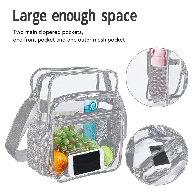 - SHOULDER STRAP: Breathable mesh strap in transparent shoulder bag provides comfort for your shoulder and can be adjusted according to your needs