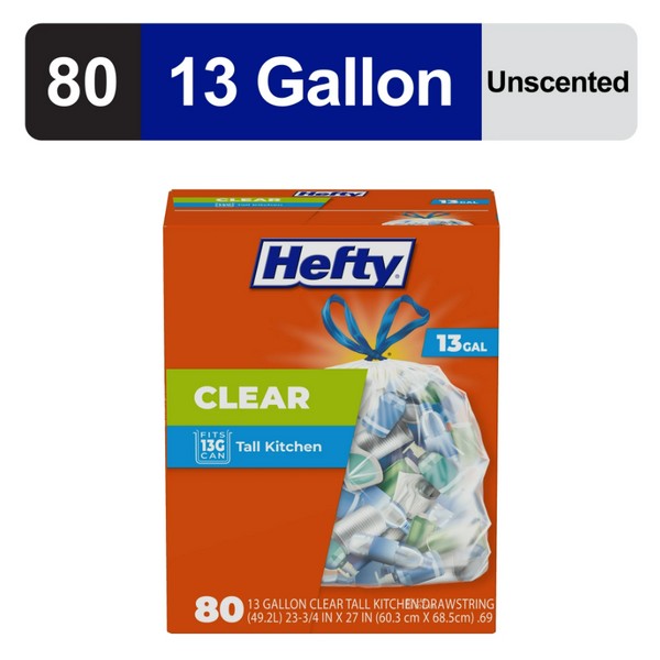 Clear Trash Bags, Clear, 13 Gallon, 80 Count