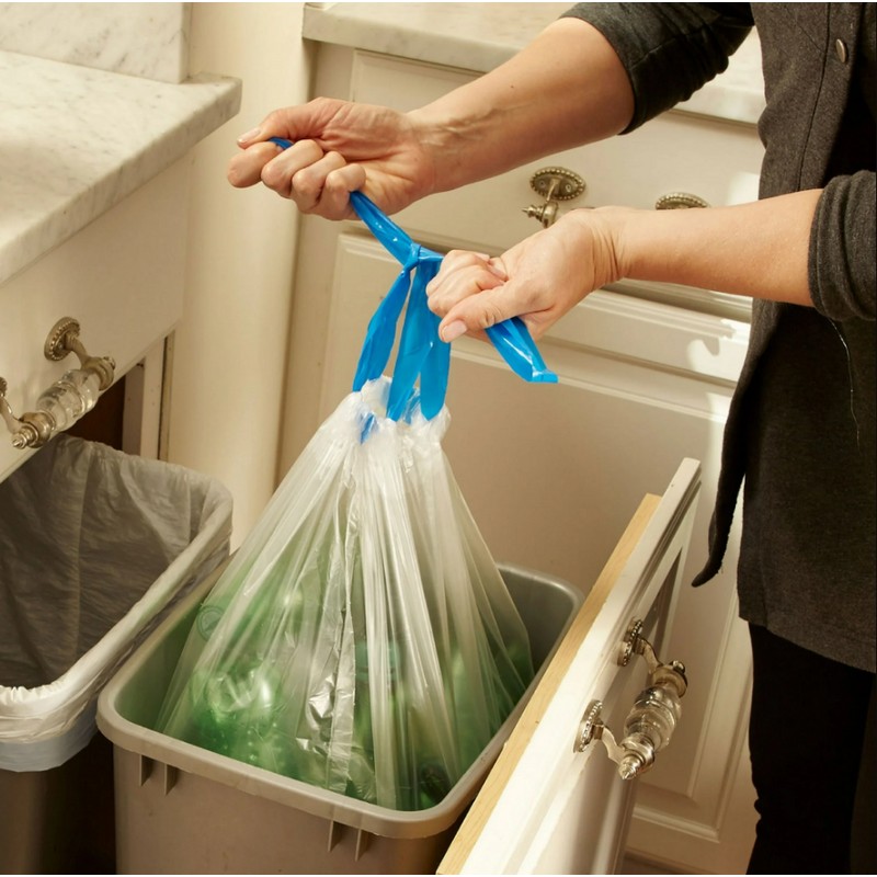 - Made from high-quality plastic in the United States, these clear trash bags offer a modern solid pattern that blends seamlessly with your home decor.