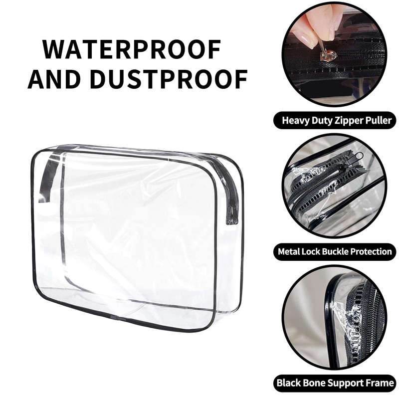 • Waterproof and Reinforced Seams: This clear makeup bag is made of thick transparent PVC material, which is durable and easy to wipe clean. The reinforced seams prevent the clear makeup bag from splitting easily, effectively reduce the liquids leak out from this bag