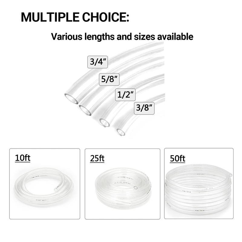 - [MULTIPLE CHOICE]:There are various lengths and sizes available, you can choose according to the actual use, and the clear vinyl tubing can be easily cut with any cutting tool to meet various applications