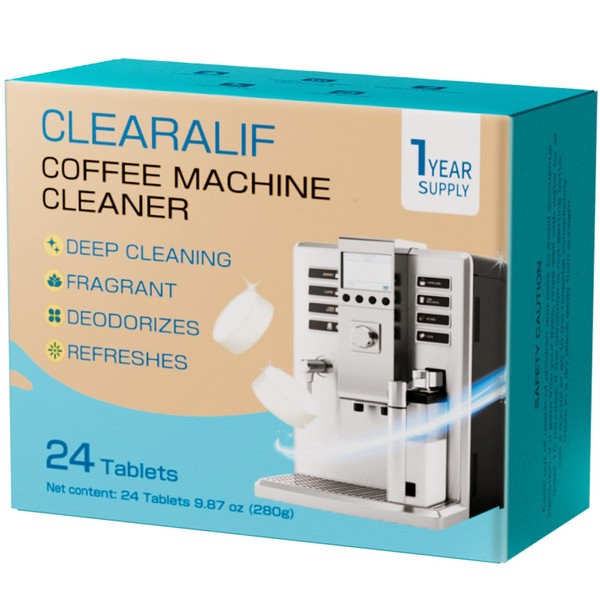 CLEARALIF Coffee Machine Cleaner Descaler Tablets, 24 Count, Unscented, Coffee Machine Descale Works With All Coffee Makers