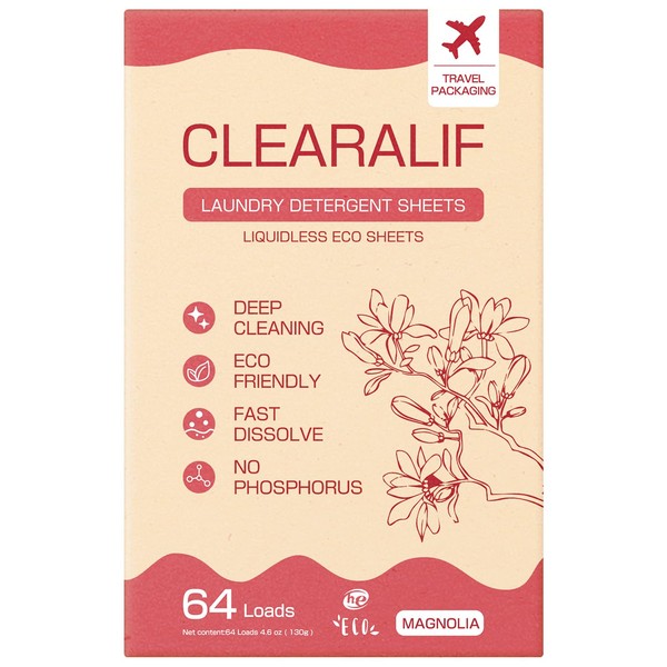 CLEARALIF Laundry Detergent Sheets, Magnolia, 64 Load, CLEARALIF Laundry Detergent Strips Eco Friendly & Hypoallergenic