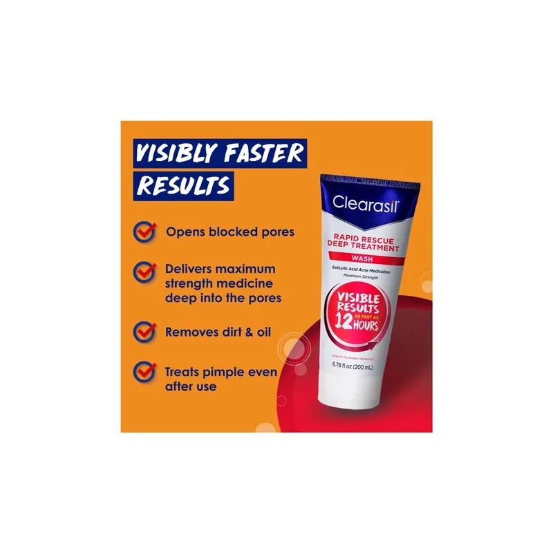 Clearasil Acne Rapid Rescue Deep Treatment Wash 200ml 6.78oz
