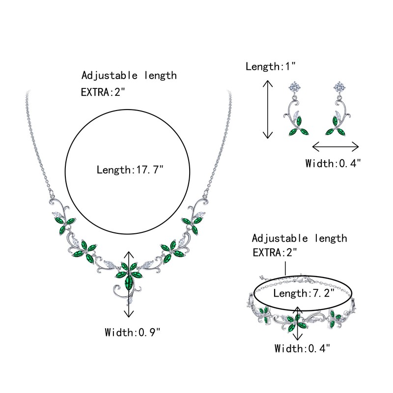 - Necklace: chain length (adjustable): 17.7-19.6 inches, pendant size: 4.3 inches x 0.9 inches. Earrings size (pierced): 2.5 x 0.4 inches. Strap size: 0.4 inches x 3.7 inches. Bridal Jewelry Set Total Weight:20.2g