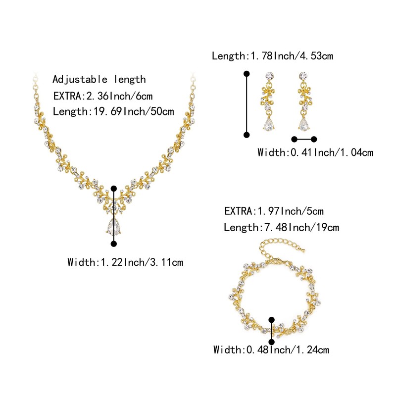 - SPEZIFIKATIONEN: Halskette Kettenlänge: 16.69-22.05in, Anhänger Größe: 8.27in * 1.22in. Ohrringe Größe: 1.78in * 0.41in. Armband Länge: 7.48-9.45in, Breite: 0.48in. Gesamtgewicht: 47.56g.