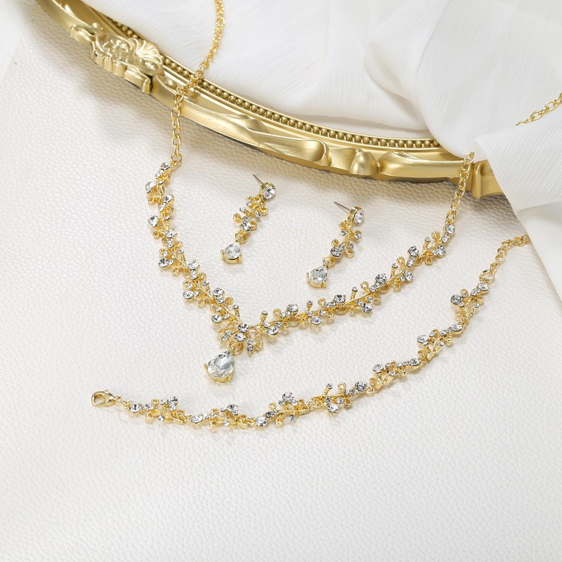 Clearine Hochzeitsschmuck Set für Damen, Glänzend Strass Teardrop Leaf Cluster Statement Halskette Dangle Drop Ohrringe Gliederarmband für Hochzeit Party Prom Zubehör Klar Gold-Tone