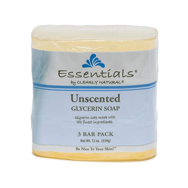 Clearly Natural Essentials Glycerin Bar Soap, Unscented, 4 Ounce, Pack of 3 (Packaging May Vary)