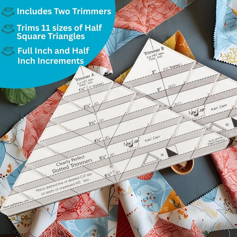 New Leaf Stitches Slotted Trimmer - Acrylic Template Ruler for Accurate Cutting and Trimming - Designed for Half-Square Triangles, Strip Piecing, Block Construction - Ideal Stencil & Tool for Quilters