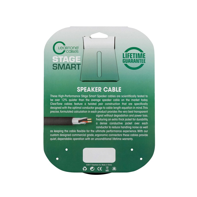 These high-performance Stage Smart speaker cables are scientifically tested to be over 12% quieter than the average speaker cable on the market today. They feature a twisted pair construction that are specifically designed with the optimal conductor gauge to cable length equation (GTLO) in mind. This provides excellent transparent signal without degradation and power loss. Other features include an extra thick jacket for durability and a dense conductive jacket over each conductor to reduce handling noise as well as keeping the cable flexible for the ultimate performance experience. The ergonomic connectors provide quiet, dependable operation.