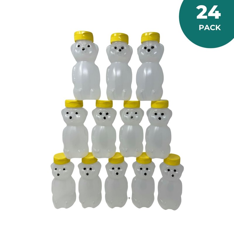 CLEARVIEW CONTAINERS 12oz Honey Bears (12oz Translucent Bear, Yellow Lid - 24 Pack) Perfect for Holidays, Baby Shower Gifts, Beekeeping, Honey Dispensing