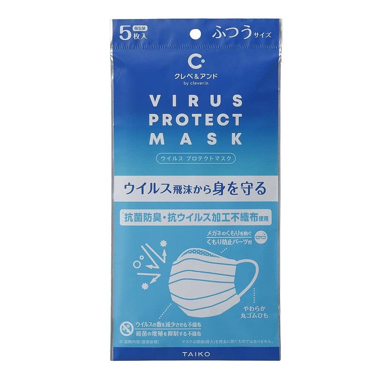 Clebe & And Virus Protection Mask, Regular Size, 5 Pieces