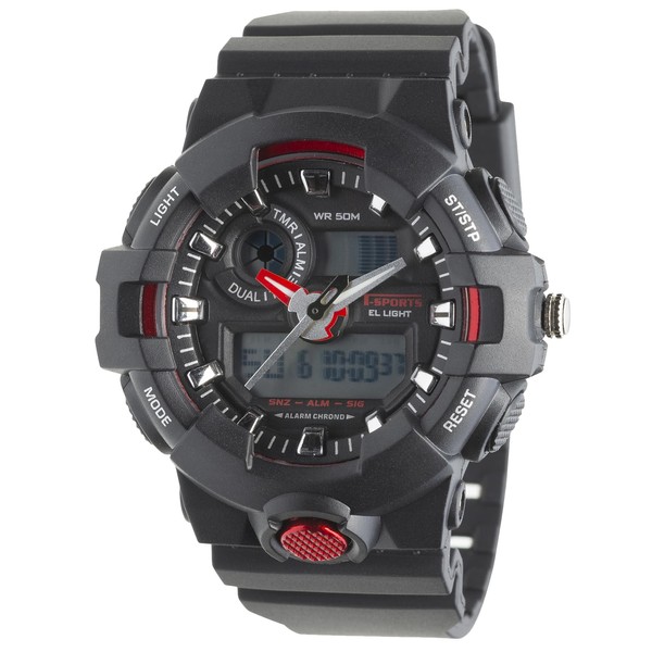 Clefer TS-AD252-RD Men's Wristwatch, Waterproof, Urethane Strap, Black, red