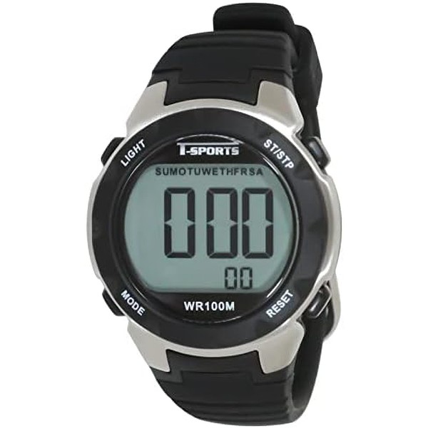 Clefer TS-D060-BK Digital Men's Waterproof Stopwatch Urethane Strap Blue Black, Black