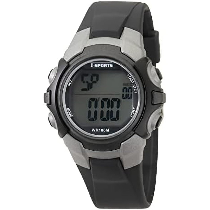 Clefer TS-D228-BK Digital Men's Waterproof Stopwatch with Urethane Strap, Black, Black