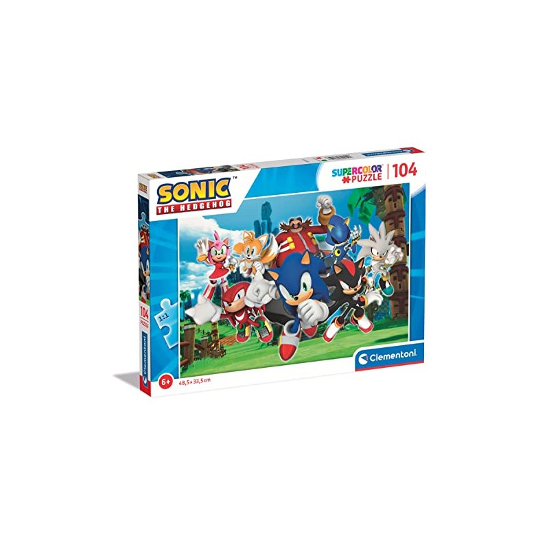 Clementoni 27159 Sonic Supercolor Sonic-104 Pieces-Jigsaw Puzzle for Kids Age 6-Made in Italy, Multi-Coloured