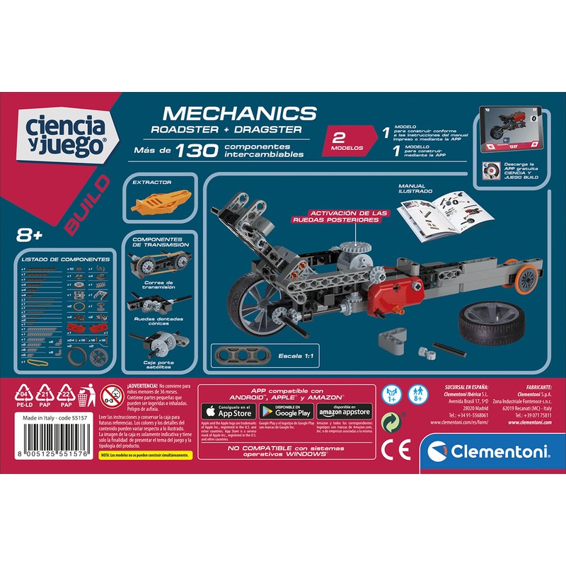 Clementoni 55157.6 Mechanics Laboratory Toy, Roadster + Dragster, Multicoloured, Miscelanea