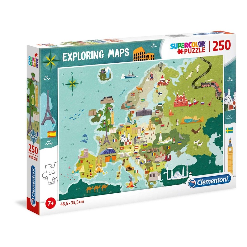 Clementoni- Exploring Maps Puzzle, 250 Piezas, Multicolor (29062.8)