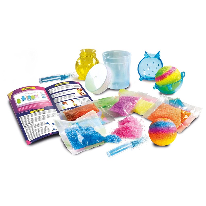 - Toy factory for children's room: the mini laboratory invites little experiment friends to discover the exciting world of research and create their own colourful jumping balls with powder and glitter