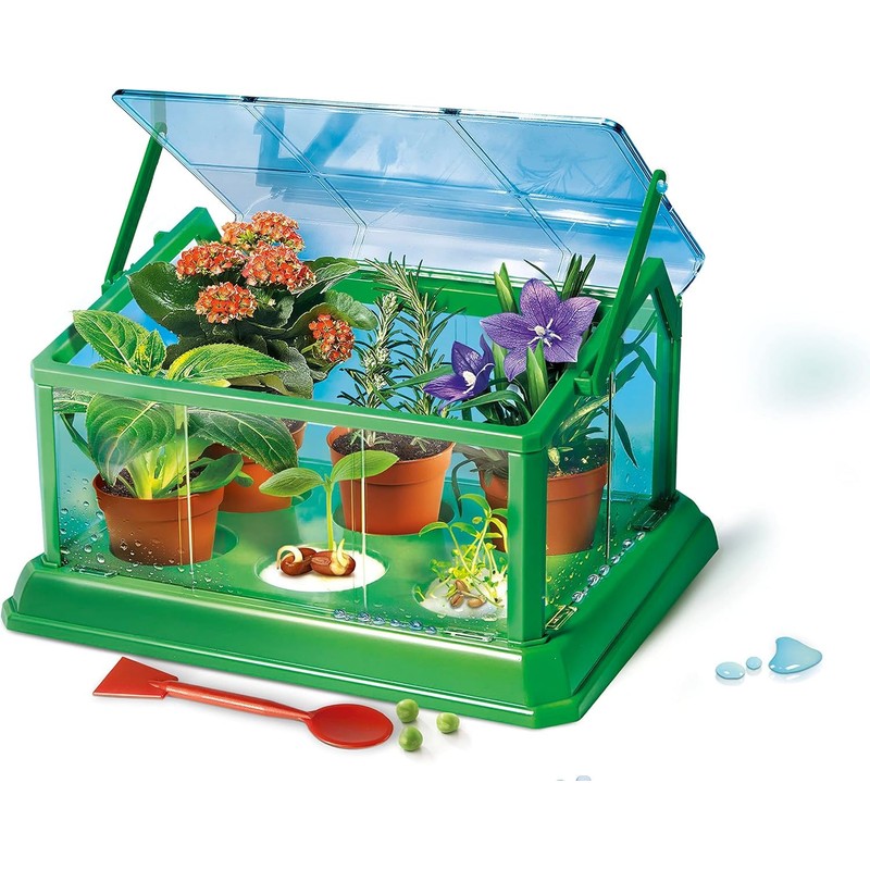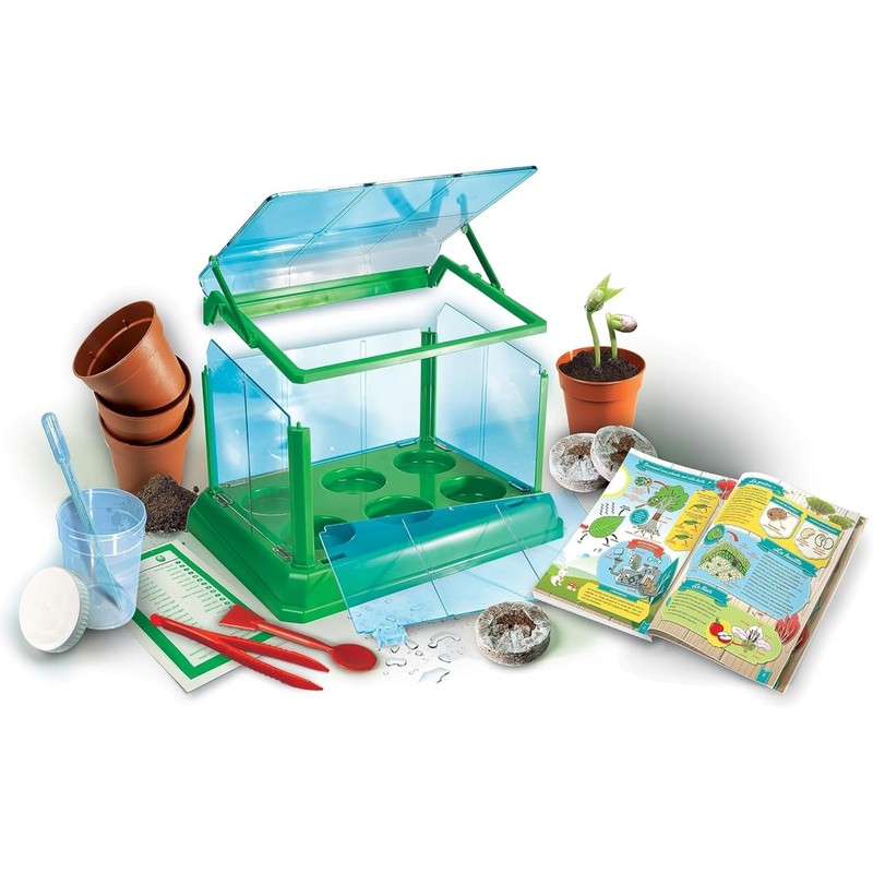 - COMPLETE BOTANIC SET – The "My First Greenhouse" laboratory includes everything you need to get started in the world of botany, with pots, a transparent greenhouse, peat, seeds and various botanist tools.