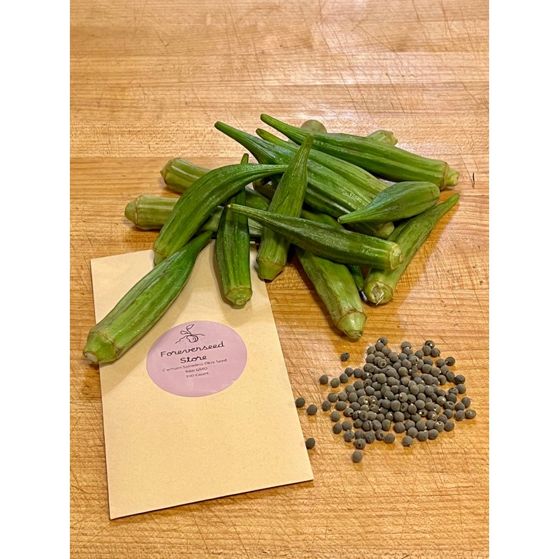 Clemson Spineless Okra Seeds, 100 Count, Non GMO Heirloom Garden Seeds, Compostable Packaging by Forever Seed Store