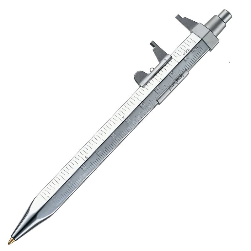 - PRACTICAL MEASURING INSTRUMENT with five functions +++ Calliper rule +++ Ruler +++ Thread scale +++ Tire thread gauge +++ Pen