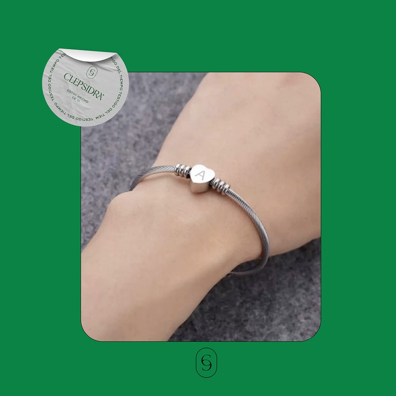 Clepsidra® Pulseras mujer plateadas personalizadas con inicial.Pulseras con grabado. Accesorios y regalos para mujer elegantes y resistentes. Personaliza tu joyeria de acero inoxidable con dijes para dama A-Z. Gift (Ajustable, L, PLATEADO)