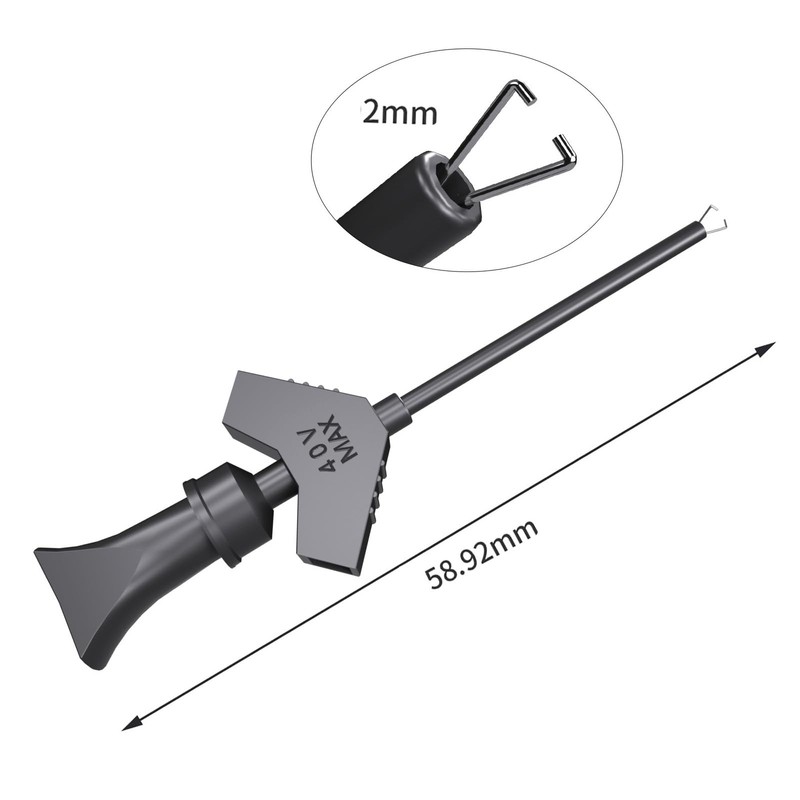 - Built-in strong spring in test clips, so they can grasp tiny components firmly and avoid short circuit. Both ends are equipped with pure copper test pins, which can be used to connect female jumper leads without soldering.