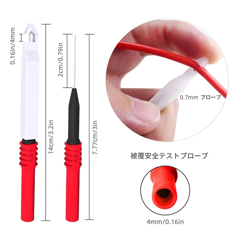 - Wire piercing probe easily connects to 4mm banana plug test lead. Great for wire piercings. No need to remove cables or damage the cable. Textured non-slip design for added comfort. High reliability and long service life. Probe Length: 20mm Voltage: 30V
