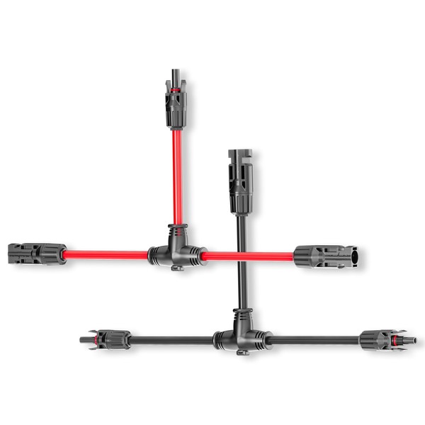 - Easy to Use: Uses a solar connector that is easy to install and safe. T-shape for quick and easy assembly. Direct connection, just press the female connector lock to release connection