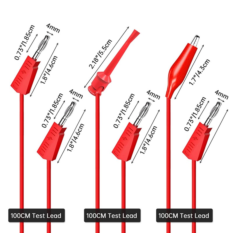 • Package included: 2 x Stackable Banana - Banana Plug Test Leads, 2 x Stackable Banana-Ming Lava Test Leads, 2 x Stackable Banana-Alligator Clip Test Leads