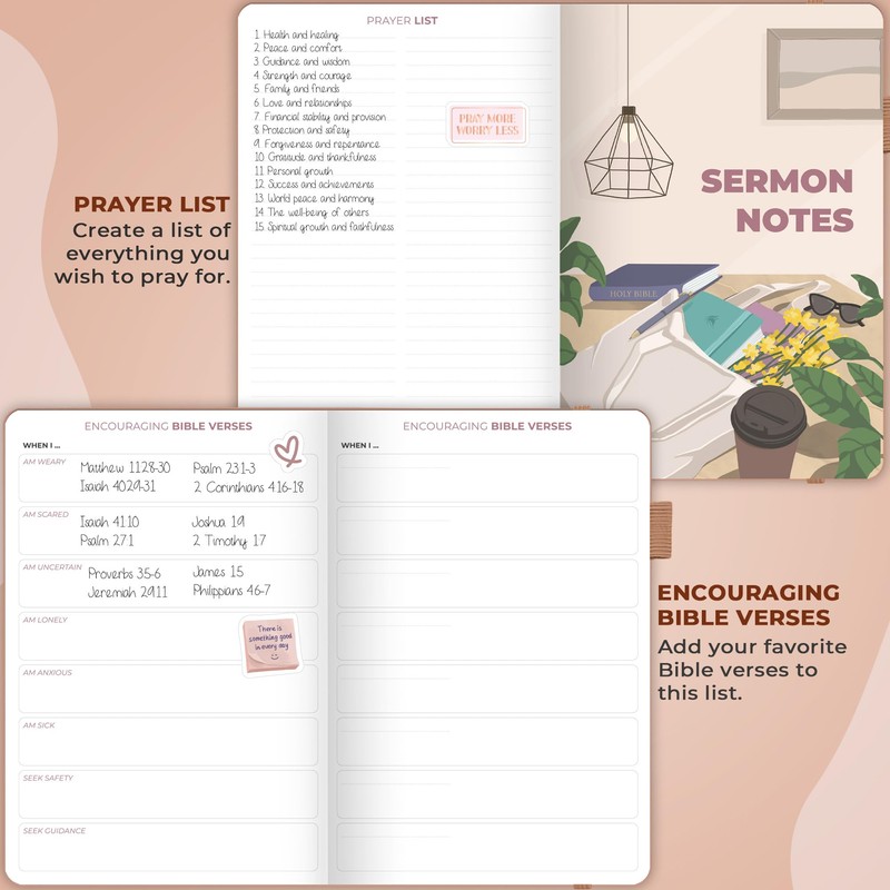 - SPACE FOR SERMON NOTES & CHARACTER STUDY – The womens bible study journal is divided into 3 parts, including sermon notes, verse study, and character study. The Study the Bible notebook also includes a prayer list and a list for your favorite verses.