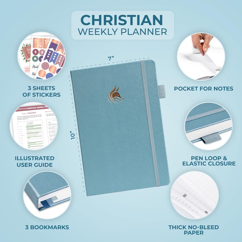 Clever Fox Christian Hourly Weekly Planner – Goal Setting Planner with Time Slots, Monthly Budget, Sermon Notes, Bible Reading Tracker (Aquamarine, Large (7.0″ x 10.0″))