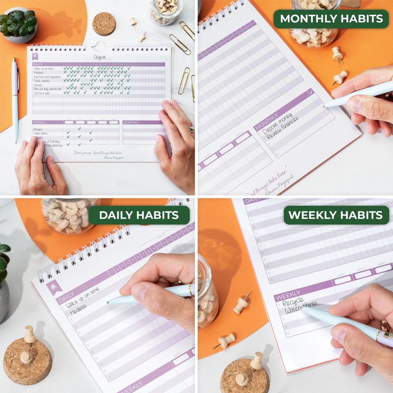 • PREMIUM MATERIALS & EASY TO USE - This habit tracker measures 25.5 x 20.5cm and is made of thick 120gsm pearl-white paper that will neither bleed through nor deteriorate with everyday use.