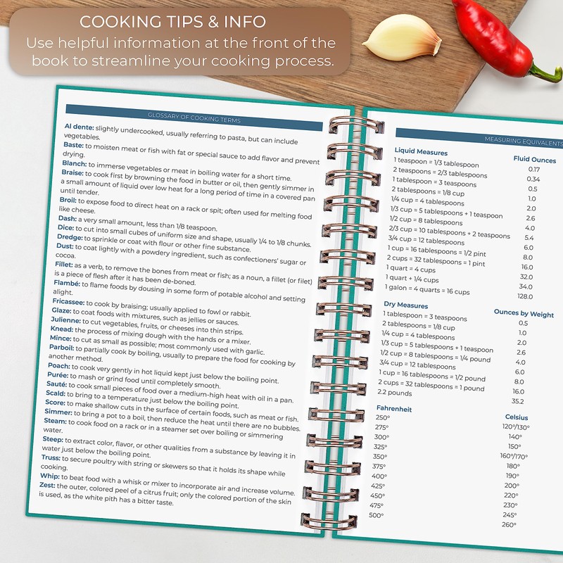 • MAKE COOKING FUN – Create a cooking bucket liand cross out your achievements! Try new recipes you didn't think you'd dare to! Clever Fox Recipe Book allows you to make the beof popular recipes or get creative and create your own. Use the cooking glossary and measurement table at the beginning of the recipe notebook to help you conquer even the hardest recipe.