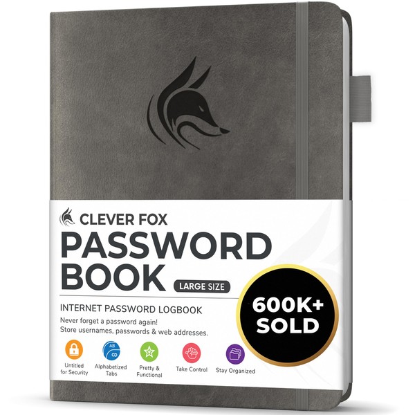 - ✅ PREMIUM QUALITY & PERFECT SIZE OPTIONS - Clever Fox Password Notebook has a high-quality leatherette hardcover with an elastic band, pen holder, 1 bookmark, 1 accordion pocket at the end of the logbook and thick no-bleed 120gsm paper. This internet address and password logbook with tabs comes in Large size, measuring 7 inches wide and 10 inches long. Pick the size best suited for your needs!