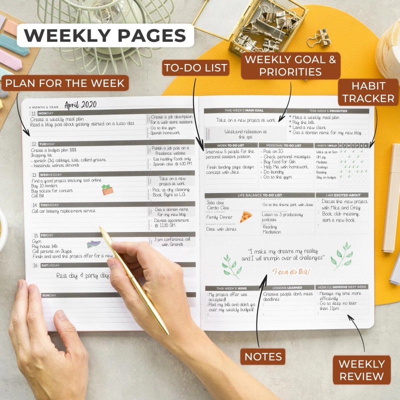 - FREE QUICK START GUIDE & STICKERS - This planner and organizer for women and men comes with a detailed step-by-step illustrated user guide and colorful planning stickers to ensure you make the most of using it.
